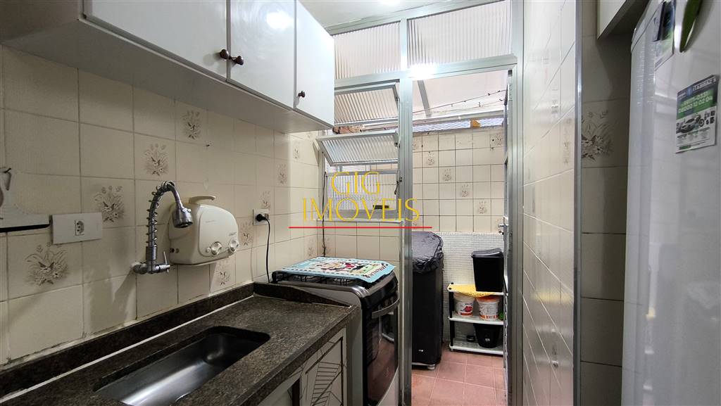 1 dormitório, sala de 2 ambientes, cozinha, banheiro social e área de serviço.